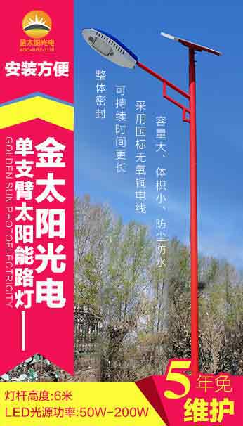 黑龍江金太陽光電自主研發(fā)設(shè)計的新款太陽能路燈上市,歡迎新老客戶前來淺談業(yè)務。